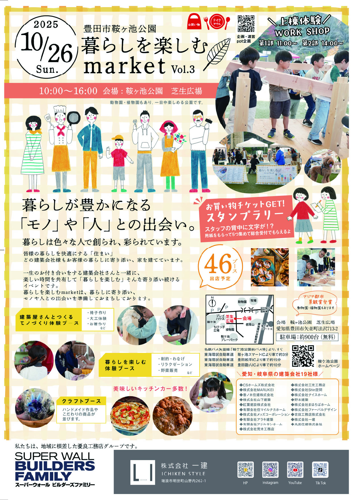 「建築屋さんとつくるモノづくり体験ブース」「暮らしを楽しむ体験ブース」「クラフトブース」など、親子で楽しめるイベントが盛りだくさんです!遊びながら家の相談もできてしまう楽しいイベントです!