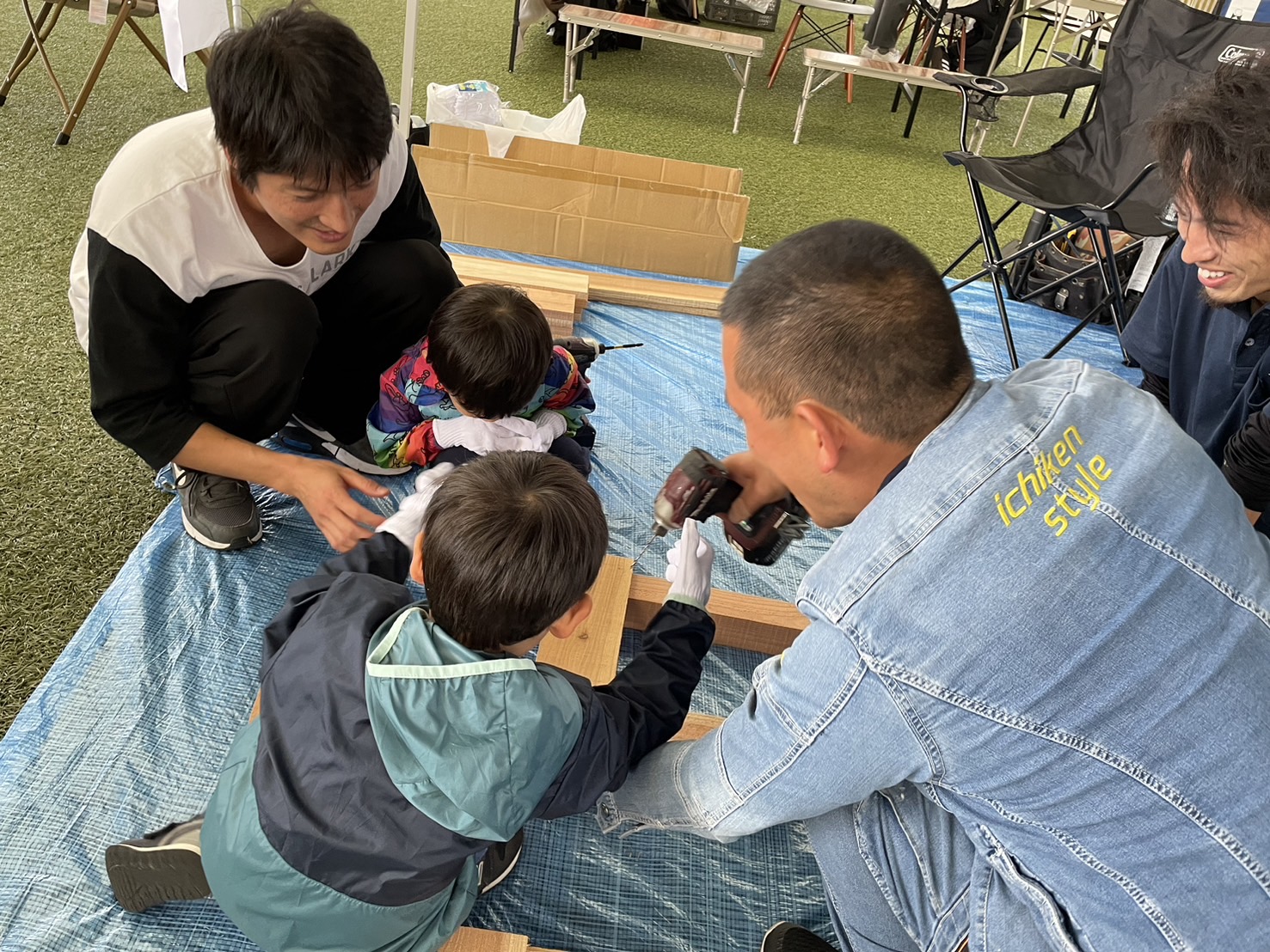ミニ椅子の製作は20分~30分ほどで、一建の大工さんが丁寧に教えてくれるので、ご安心ください!