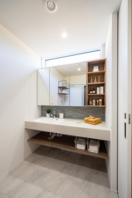 家づくりでこだわった点、一番気に入っている所を教えてください。こだわったところは、とにかく落ち着ける色味にしたところです。 お気に入りは、リビングと、サニタリーの色味、広いシュークロです!