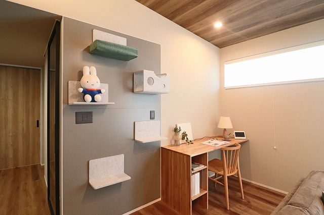 家づくりでこだわった点、一番気に入っている所を教えてください。愛猫のためのにゃん壁とにゃん壁の納まりを天井高2.2mのラインに揃えたところです。