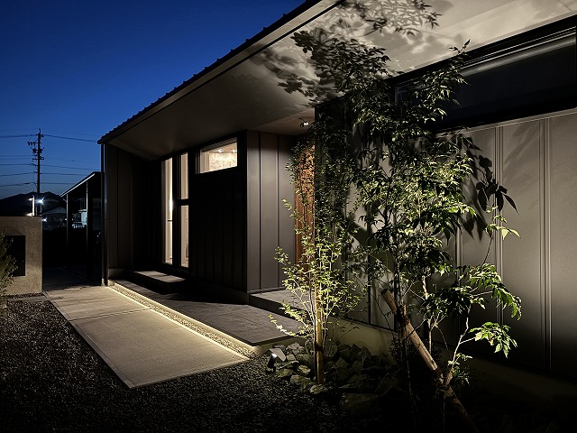 完成したデザインはいかがでしたか?内装・外装ともに大満足しています。 特に、夜にライトアップされる植栽がお気に入りです。