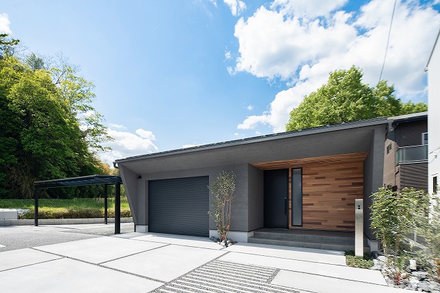 外壁はシックなグレーを基調に、木目のアクセントが”ただいま“の景色を彩ります。